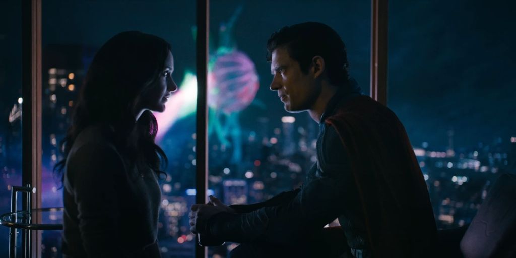 Il capovolgimento geniale dell’archetipo fumettistico si trova nel rendere i genitori biologici di Superman, il cui padre è interpretato da Bradley Cooper, dei personaggi “negativi” e la spedizione dell’eroe una missione colonizzatrice. Sono quindi i genitori terrestri le figure importanti nella vita di Clark che lo hanno portato a diventare ciò che è. Quando scappati dell’universo tasca Lois porta Clark a Smallville dai suoi, il film si ferma per tirare le somme di ciò che ha raccontato fino a quel momento e procedere poi con il terzo atto. L’inquadratura rivelatrice è la soggettiva di Lois nella stanza del protagonista che vede trofei, foto e il poster della band fittizia di cui Clark è fan, tutte cose che lo rendono un essere umano. Nel discorso che fa davanti a Luthor evidenzia proprio questo, la sua capacità di amare, avere paura, essere uno di noi, davanti invece a un personaggio mostruosamente cattivo, che nel finale piange ( eventuale redenzione o invidia nell’essere diventato lui un alieno?). Un’altra inquadratura che riflette sull’idea di “Dei e Mostri”, titolo del primo capitolo di questo universo cinematografico è quella in cui uscendo i protagonisti nell’accampamento di Luthor si vede Metamorpho allontanarsi col figlio nell’oscurità, con uno sguardo ingenuo e spaventato.