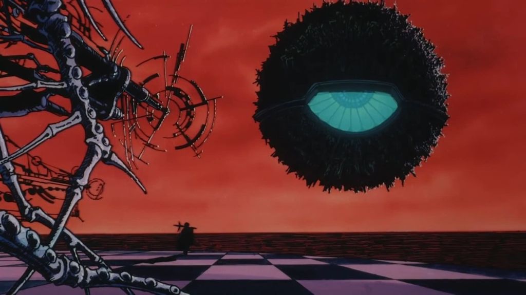 A essere spersonalizzati però, sono anche i due protagonisti, portatori di valori morali opposti. In uno dei pochissimi dialoghi del film, entrambi chiedono all’altro chi sia, senza ricevere risposta. Tutto il resto è silenzio, tagliente e fatale. In un certo momento Oshii ci colloca in fondo a una stanza dove la bambina e il giovane sono appoggiati, e noi la vediamo man mano addormentarsi, illuminata solo da un lumino vicino. La bambina è l’unica forma di purezza e calore in quel vuoto, dal suo affetto verso l’uovo alla sua ingenuità nel destreggiarsi tra le strade deserte anche solo per bere un po’ d’acqua, fonte primaria anch’essa di vita e sostentamento. In fondo, l’uovo è spesso al centro di dilemmi filosofici su cosa sia nato prima tra esso e la gallina ed alla base di concetti come la metamorfosi e il Big Bang. Suggestionata dal ritrovamento dello scheletro di una figura alata, la bambina confida in un Angelo che una volta uscito dall’uovo possa ridare ordine al creato circostante. È l’incarnazione perfetta della fede, un gesto sulla fiducia rassicurante che le cose possano migliorare, forse l’unica vera consolazione che può portare ordine nel disordine. Quell’incarnazione a cui tanto teneva Kirckegard, unico palesarsi di Dio nel razionale (o irrazionale, se vogliamo porre il mondo su un piano ancora più distopico). Tanto che la stessa bambina, vicino all’uovo, è l’unica beneficiaria della vera felicità e invece di inseguire un fantasma, abbraccia una speranza. Se c’è qualcosa che regolamenta quel mondo, di certo non è laggiù.